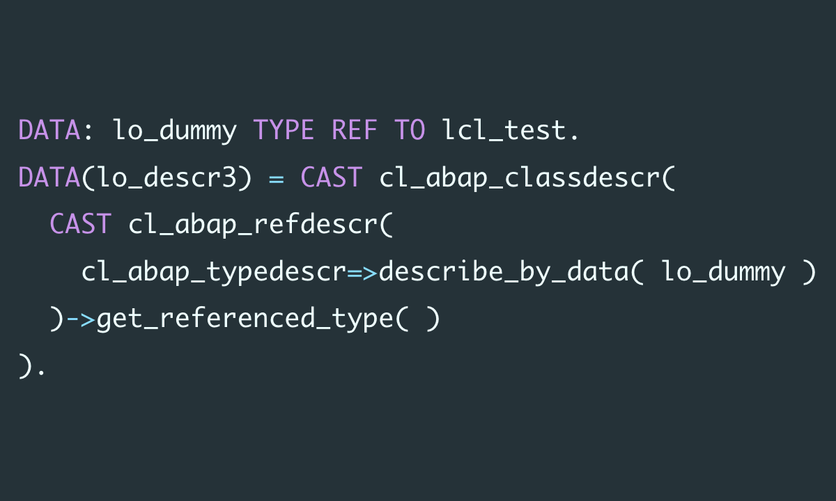 ABAP’s reflection (and/or type introspection of you want to make that distinction) capabilities consist mostly of the CL_ABAP_*DESCR-classes and the DESCRIBE...