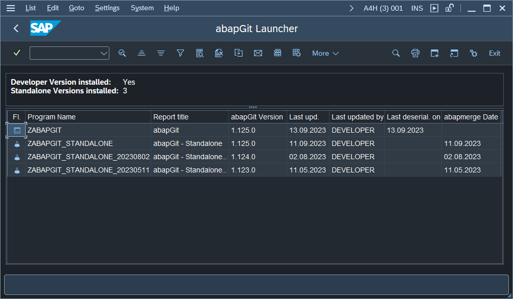 While the developer version uses global objects where only one active version can exist, the standalone version is contained in a single report. You can install as many standalone versions in parallel as you wish. One of the only objects that is shared between the versions is the database table ZABAPGIT, meaning you can access the same data from all installed versions. Now you can simply update the developer version frequently and point anyone requiring an older version to a fitting older standalone version installation. They are even motivated to migrate back as parallel serialization is only supported in the developer version…