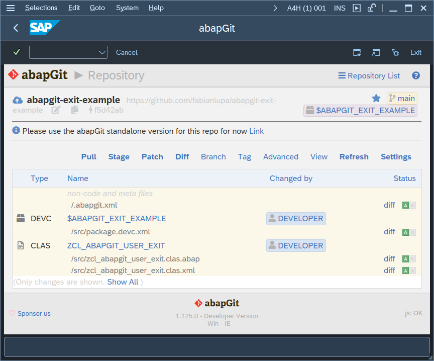 Ideally you wouldn’t need to do any of this and just update abapGit at a regular interval. This can still be done if you don’t mind the occasional diffs on the staging screen. Also the amount of times format changes happen has decreased significantly over the years as the most used object handlers are very stable by now. If format changes happen, they are usually bundled and merged together to minimize the impact as well as listed in the change log.